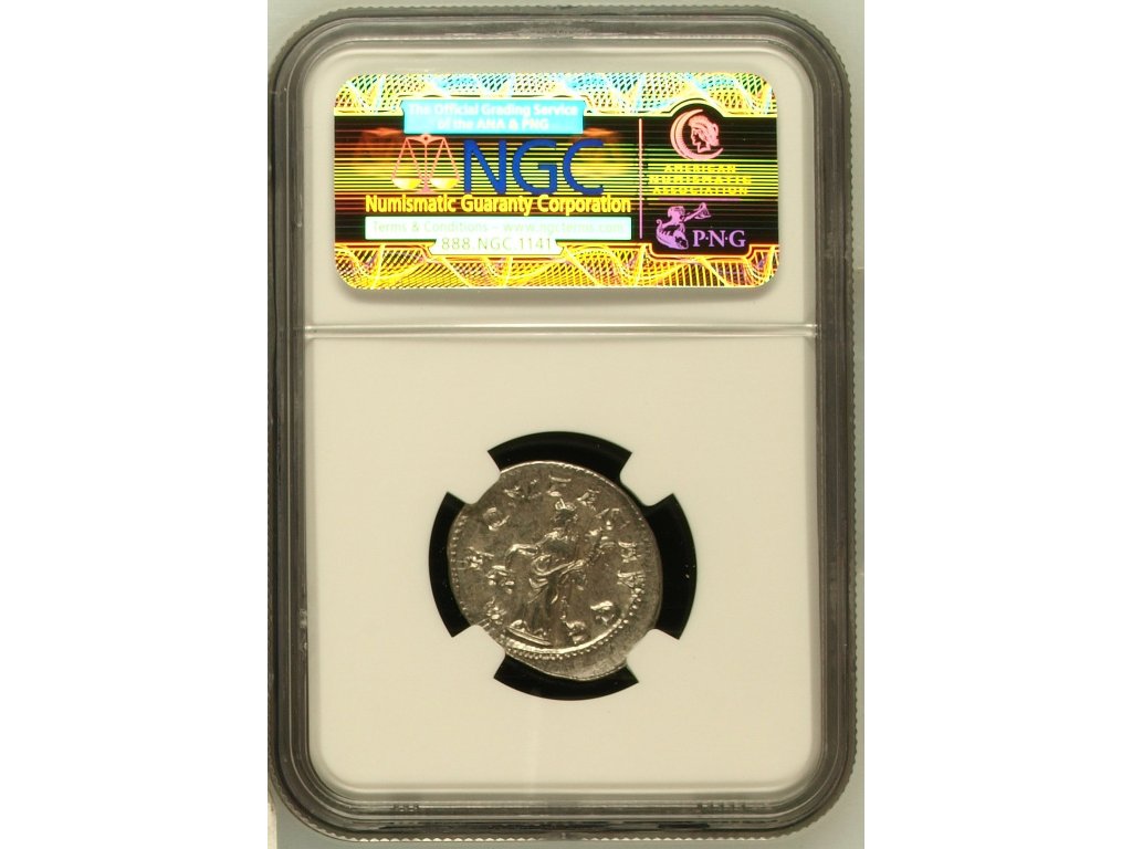 Mince je katalogizována jako RIC IV 27b a byla ražena pravděpodobně v Římě. Tento motiv je typickým příkladem římské propagandy – zajištění řádu a prosperity pod vládou císaře. Exemplář je certifikován společností NGC Ancients jako CH AU (Choice About Uncirculated), což znamená výbornou zachovalost a ostrý reliéf, podpořený holderem s číslem 2401032-070.