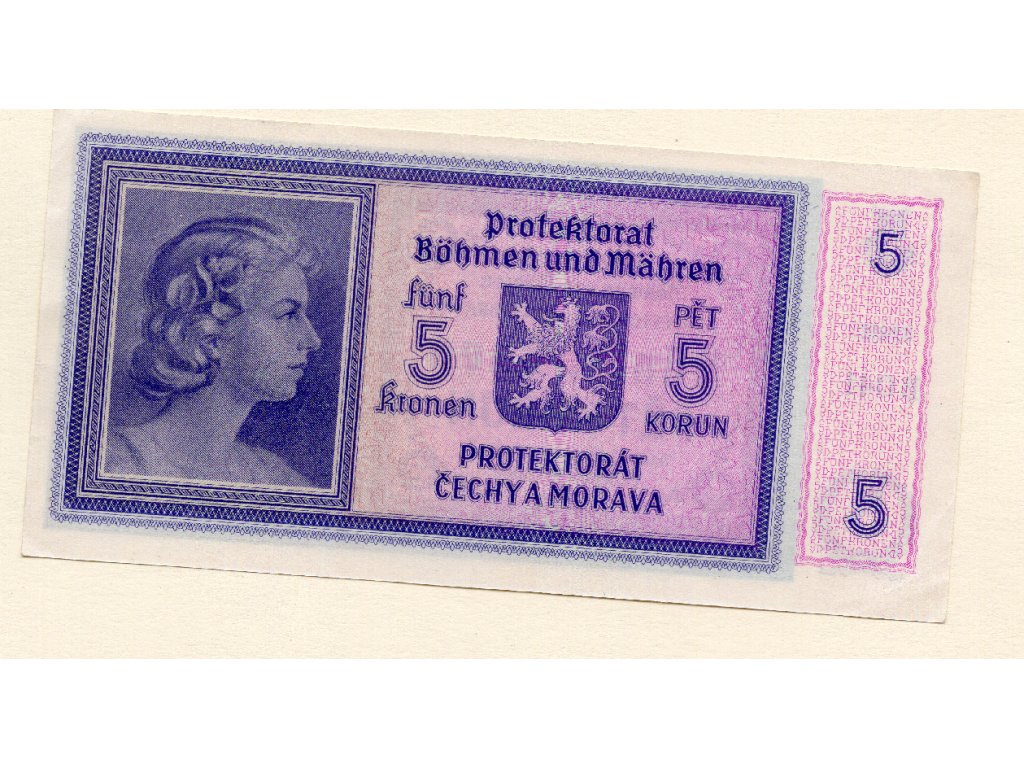 Protektorát Čechy a Morava vznikl po okupaci českých zemí v březnu 1939 a jeho měnový systém byl pevně podřízen německé správě. Vydávání bankovek hrálo klíčovou roli při upevňování kontroly nad ekonomikou, a proto byly nové emise rychle zavedeny do oběhu. Pětikoruna z roku 1940 patří k prvním typům této éry a byla určena pro každodenní platební styk v době, kdy se protektorát potýkal s rostoucími omezeními, přídělovým hospodářstvím a postupnou germanizací veřejného života.