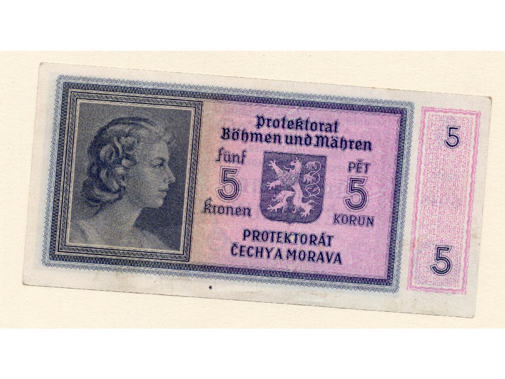 Protektorát Čechy a Morava vznikl po okupaci českých zemí v březnu 1939 a jeho měnový systém byl pevně podřízen německé správě. Vydávání bankovek hrálo klíčovou roli při upevňování kontroly nad ekonomikou, a proto byly nové emise rychle zavedeny do oběhu. Pětikoruna z roku 1940 patří k prvním typům této éry a byla určena pro každodenní platební styk v době, kdy se protektorát potýkal s rostoucími omezeními, přídělovým hospodářstvím a postupnou germanizací veřejného života.