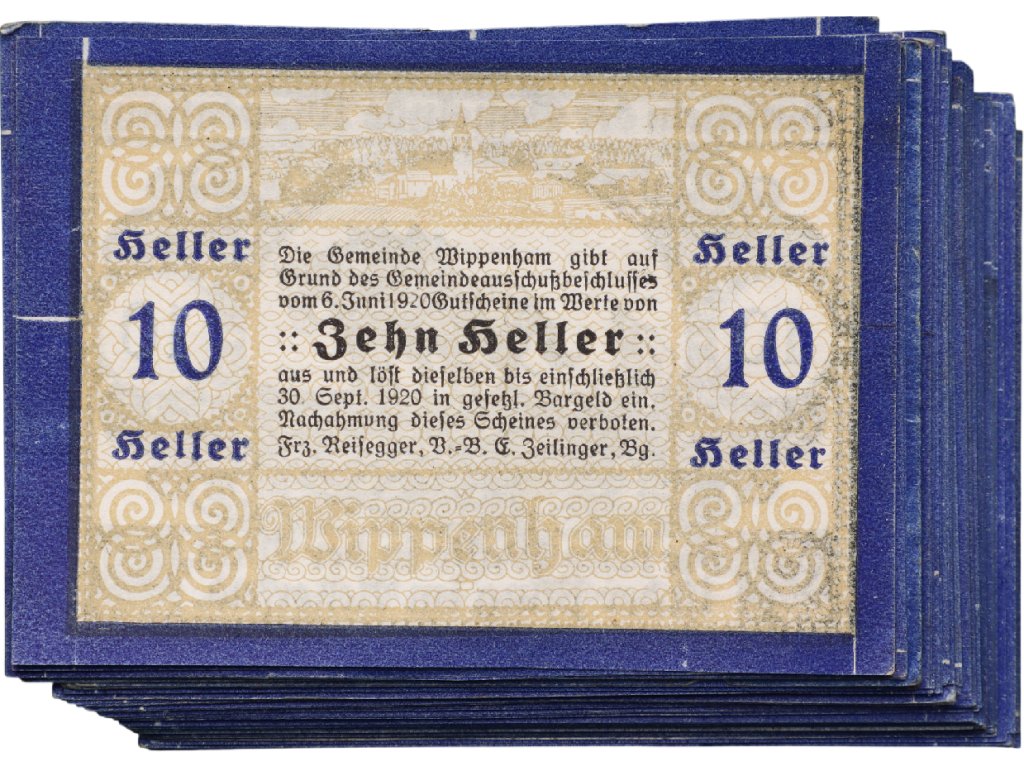 Jedním z vydavatelů byla také obec Wippenham v Horním Rakousku. Podle textu na bankovce obec vydávala tyto poukázky na základě rozhodnutí obecního výboru a zavazovala se je do stanoveného termínu vyměnit za zákonné platidlo. Takové ustanovení bylo pro většinu nouzových emisí běžné a mělo posilovat důvěru obyvatel v jejich hodnotu.