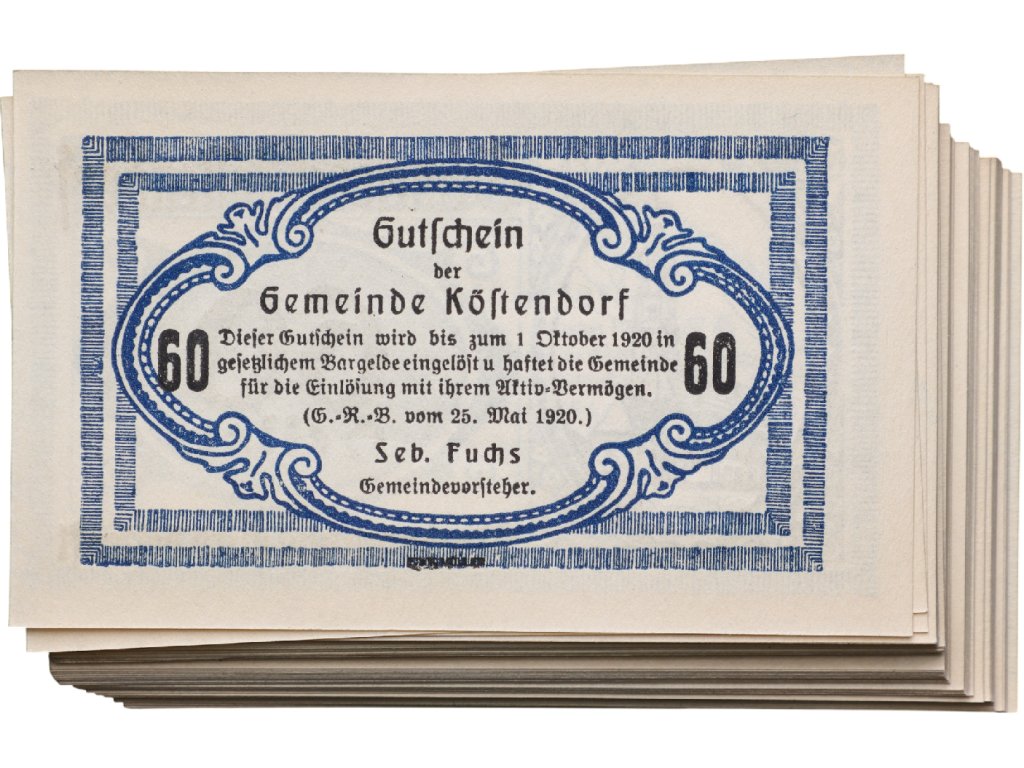 Rakousko procházelo po roce 1918 obdobím výrazné hospodářské nestability, která se projevila i nedostatkem drobných mincí v oběhu. V reakci na tuto situaci začaly obce vydávat vlastní nouzová platidla, známá jako Notgeld. Köstendorf patřil mezi obce, které tímto způsobem zajišťovaly každodenní platební styk svých obyvatel.