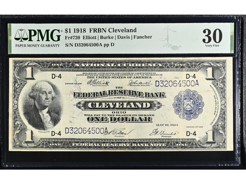 USA – 1 Dollar 1918, Federal Reserve Bank of Cleveland (FRBN) PMG 30