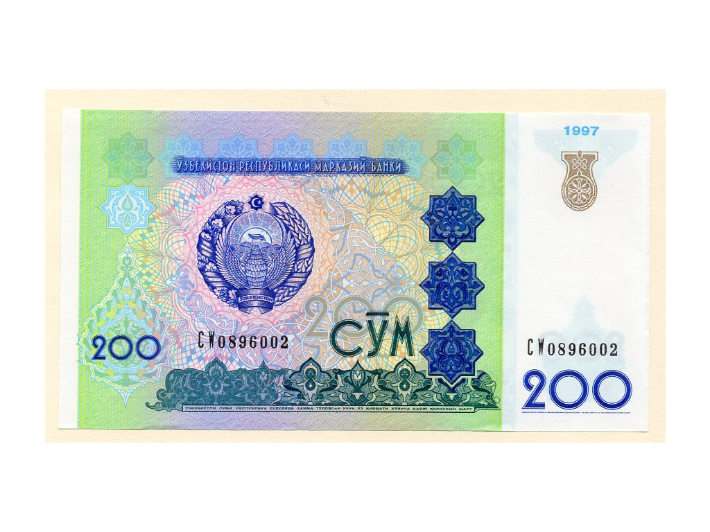 Uzbekistán po získání nezávislosti v roce 1991 přistoupil k vytvoření vlastního měnového systému, jehož základem se stala měna soʻm, zavedená v roce 1994. Bankovky z tohoto období odrážejí snahu o posílení národní identity a odklon od sovětského dědictví.