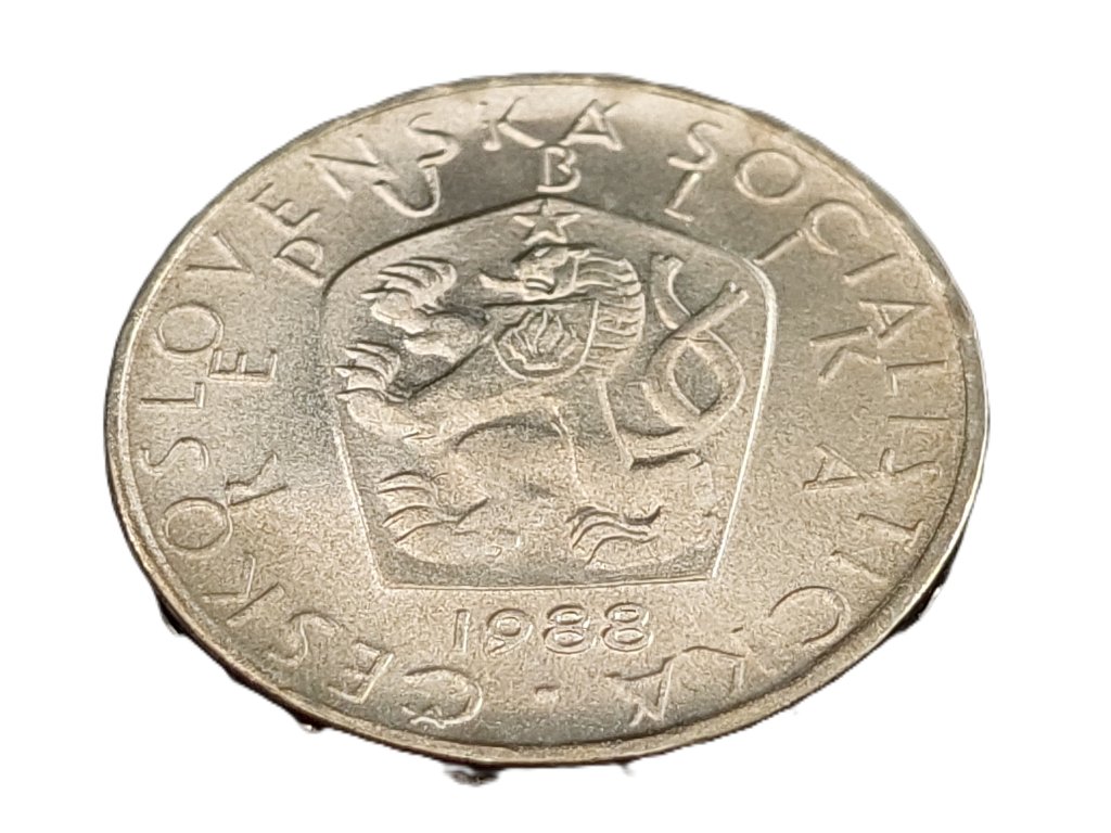 Pětkorunová mince z roku 1988 nebyl vydán pro běžný oběh, ale pouze jako součást oficiálních sad oběžných mincí určených pro sběratele. Náklad této varianty činil pouhých 29 000 kusů, čímž se z ní stává vysoce ceněný a vyhledávaný kus. Averz mince nese státní znak Československé socialistické republiky s typickým lvem a hvězdou, zatímco na reverzu dominuje symbolika práce a plodnosti, kterou reprezentuje sedící žena s motykou. Mince má vysoký sběratelský potenciál zejména ve výborném stavu zachování, neboť původně pochází z pečlivě uložených sad.