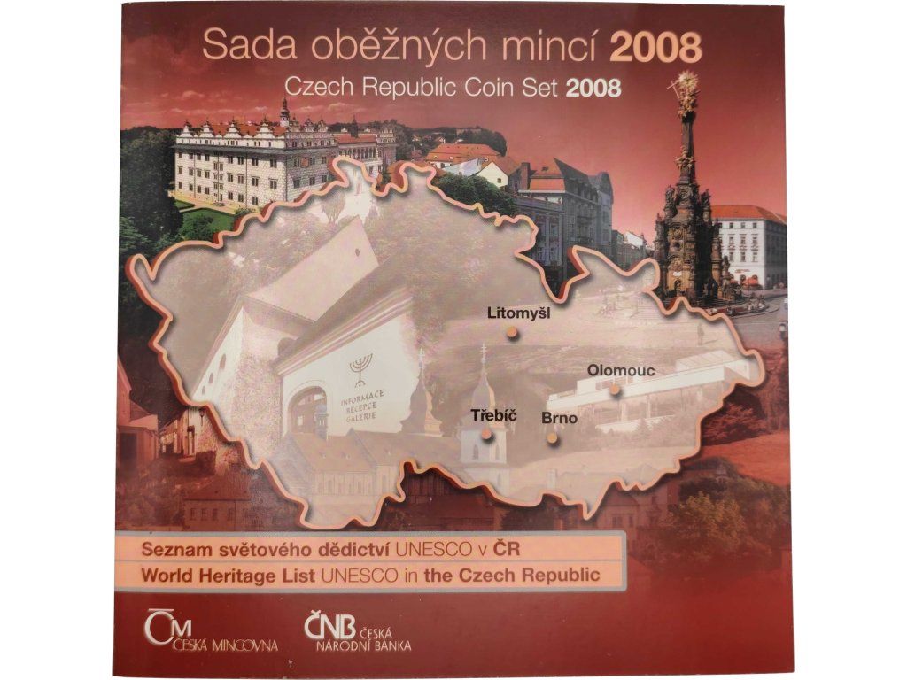 Sada oběžných mincí České republiky z roku 2008 pokračuje v tematice památek UNESCO. Obsahuje kompletní oběživo doplněné o pamětní medaili s motivy významných historických lokalit na území České republiky. Mince ve stavu UNC (karton může být lehce odřen a některé mince lehkou patinu v případě zájmu konkrétního kusu si můžete vybrat na prodejně)