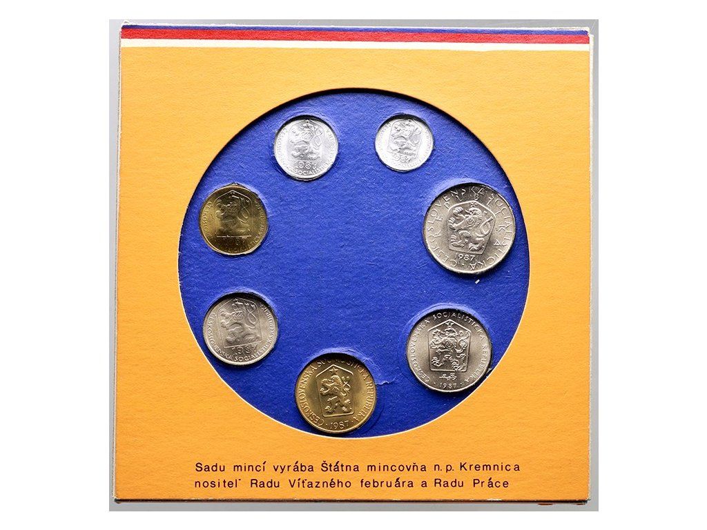 Československá socialistická republika procházela v 80. letech obdobím stabilizovaného, avšak postupně stagnujícího hospodářského i politického systému. Měna, reprezentovaná československou korunou, byla pevnou součástí centrálně řízené ekonomiky a každodenního života obyvatel. Sada oběžných mincí z roku 1987 zachycuje právě tuto fázi vývoje, krátce před zásadními společenskými změnami konce desetiletí.