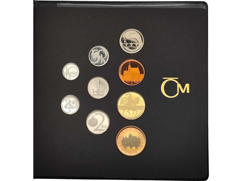 Sada obsahuje celkem devět mincí s nominálními hodnotami od 10 haléřů po 50 Kč. Haléřové mince byly z oběhu staženy, což z této sady činí o to atraktivnější připomínku přelomového období moderní české měnové historie. Vše je uloženo ve vkusném tmavém etui s logem České mincovny a doplněno originálním certifikátem, který potvrzuje složení kovů, parametry a nízký náklad 2 500 kusů.