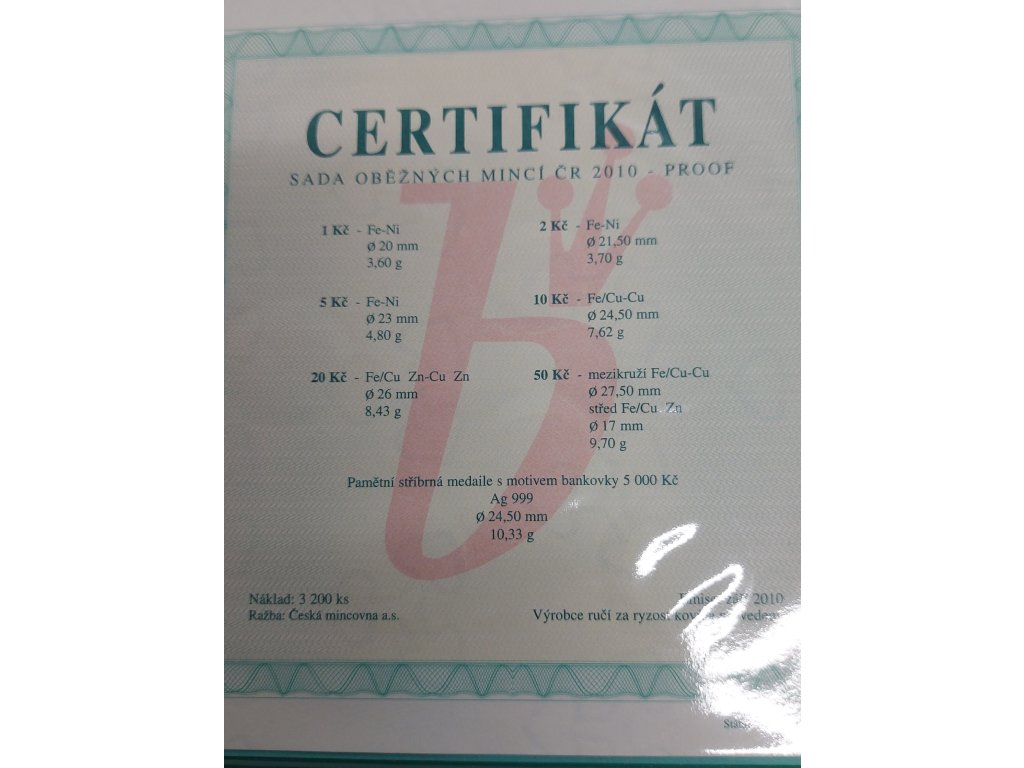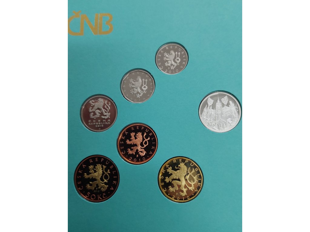 Sada oběžných mincí České republiky z roku 2010 v provedení proof osloví nejen sběratele, ale i obdivovatele precizního mincovního řemesla. Obsahuje šestici běžných nominálů od 1 Kč do 50 Kč, ražených ve špičkové kvalitě s lesklým polem a matným reliéfem. Tato technologie podtrhuje detaily designu, který reprezentuje moderní české mincovnictví.