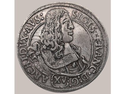 Stříbrná mince o nominální hodnotě 15 krejcarů z roku 1664 pochází z vlády Zikmunda Františka Tyrolského, posledního panovníka tyrolské větve Habsburků. Byla ražena v...