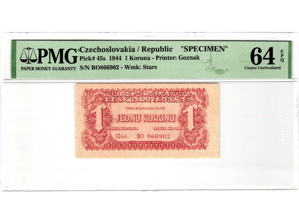 Československo 1 Koruna 1944 S. BO PMG 64 EPQ Specimen