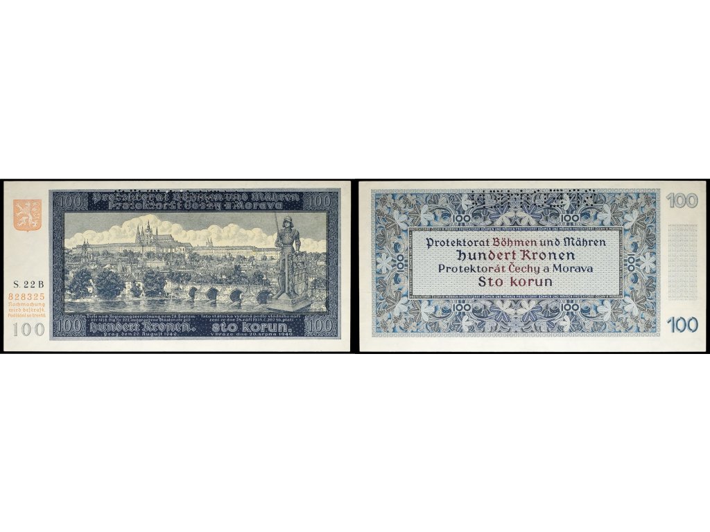 Tato bankovka o nominální hodnotě 100 korun byla vydána v roce 1940 během období Protektorátu Čechy a Morava (1939–1945). Jedná se o vzácné specimen provedení, tedy ukázkový kus určený pro schvalovací a prezentační účely. Bankovka byla tištěna v České grafické unii v Praze a nese typický motiv v podobě alegorických postav symbolizujících práci a vzdělání.