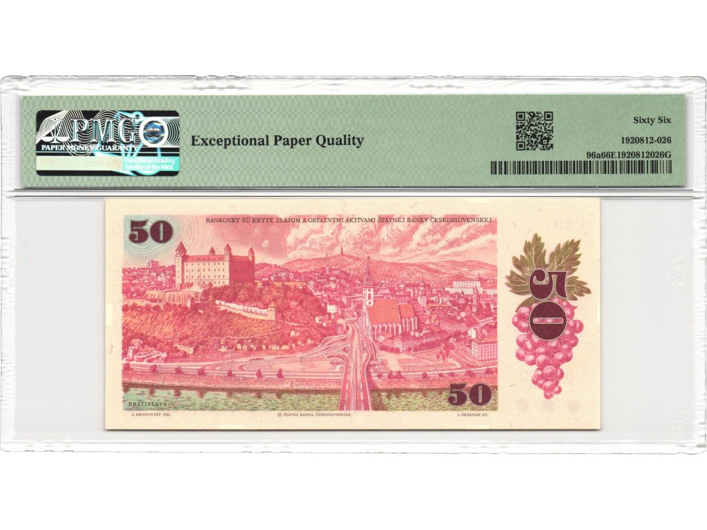 Tento konkrétní kus je profesionálně hodnocen společností PMG (Paper Money Guaranty) s výsledkem 66 EPQ Gem Uncirculated, což potvrzuje jeho výjimečnou kvalitu tisku i papíru. Bankovka je atraktivním sběratelským artiklem, který spojuje uměleckou hodnotu s historickým významem slovenské kulturní paměti.