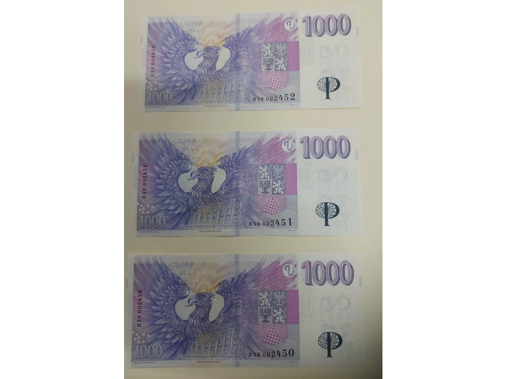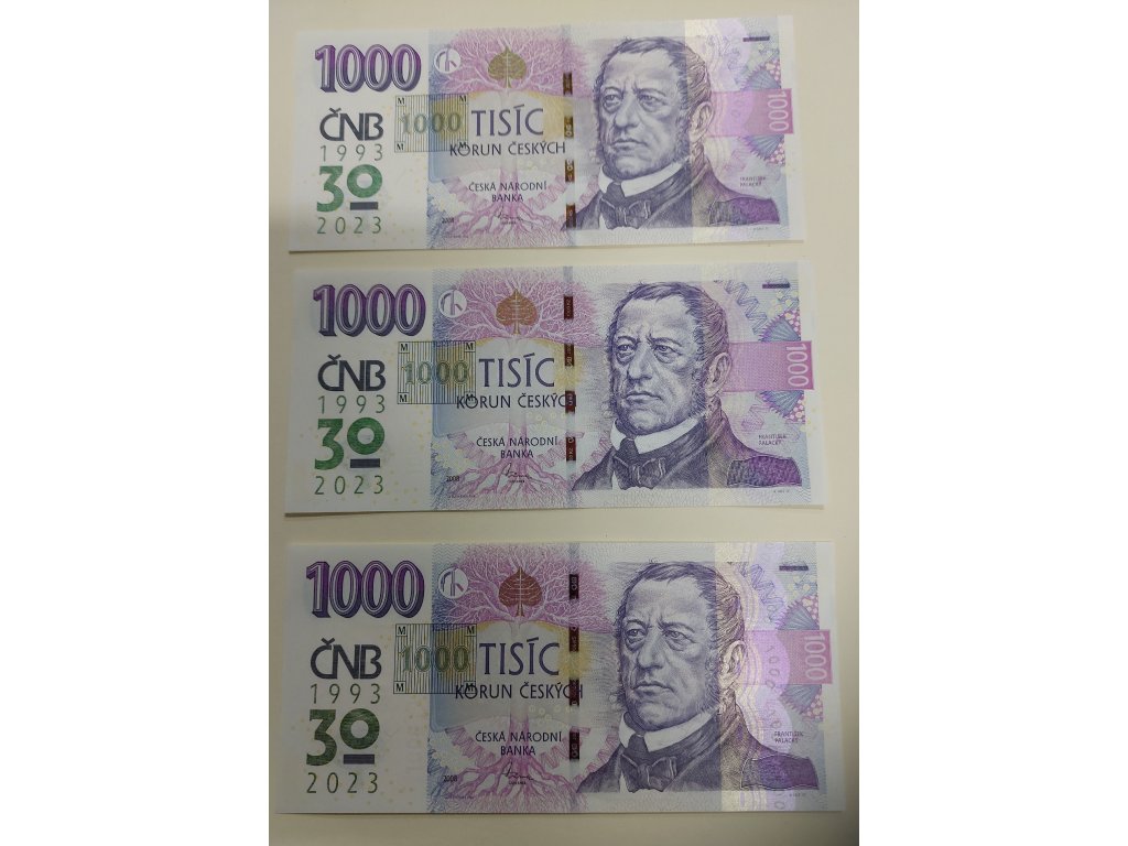 Česká republika – 1000 Kč, pamětní přetisk 30 let ČNB 2023, trojice po sobě jdoucích čísel serie R