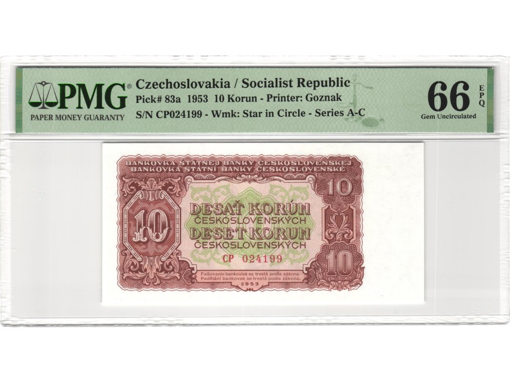 Československo – 10 Korun 1953 S. CP PMG 66 EPQ