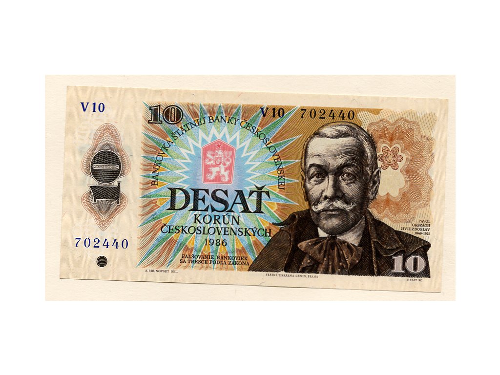 Československo v roce 1986 navazovalo ve své bankovkové tvorbě na tradici portrétování významných osobností, jejichž dílo překračovalo hranice regionů i epoch. Desetikoruna s portrétem slovenského básníka, dramatika a překladatele Pavla Országha Hviezdoslava představuje charakteristickou ukázku tohoto směru. Bankovka zdůrazňuje kulturní identitu obou částí federace a zároveň propojuje literární odkaz s grafickou estetikou 80. let.