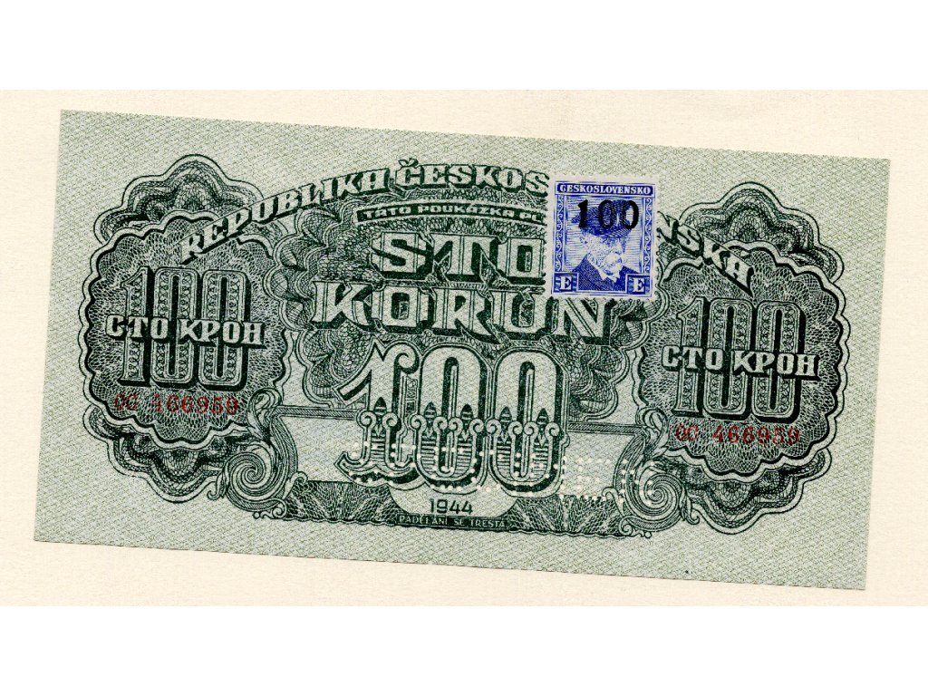 Československo – 100 korun 1944 kolek S. OC, perforace „SPECIMEN“