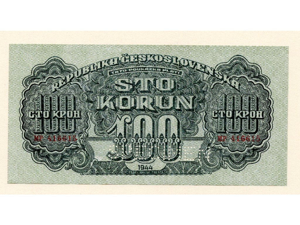 Československo – 100 korun 1944 S. MP, perforace „SPECIMEN“