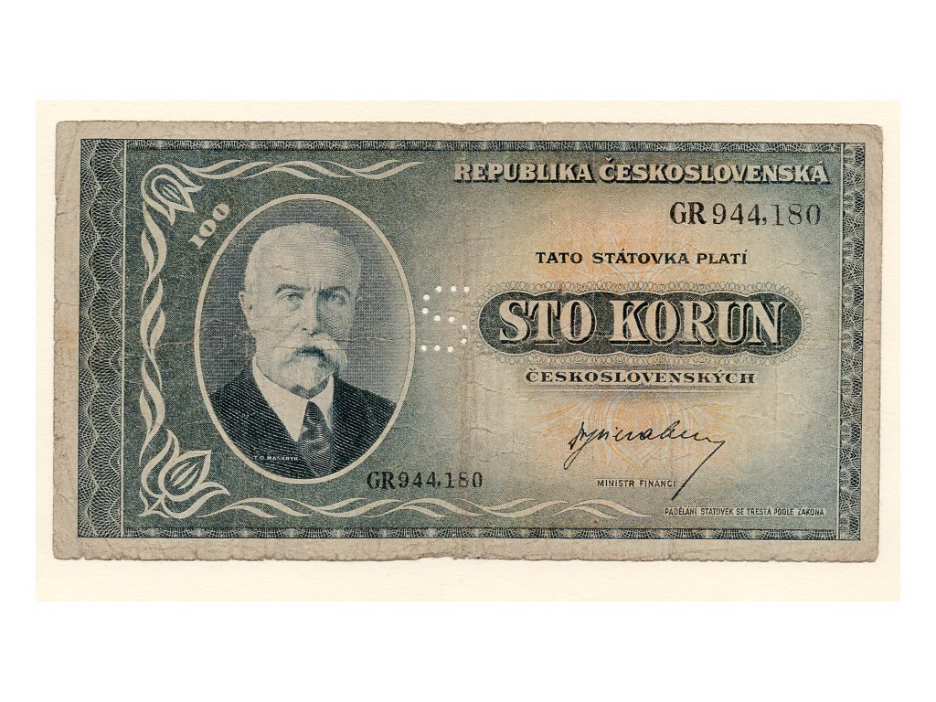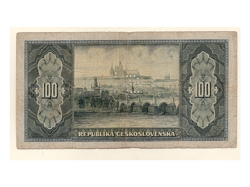 Československo – 100 korun 1945 s. GR perforace S