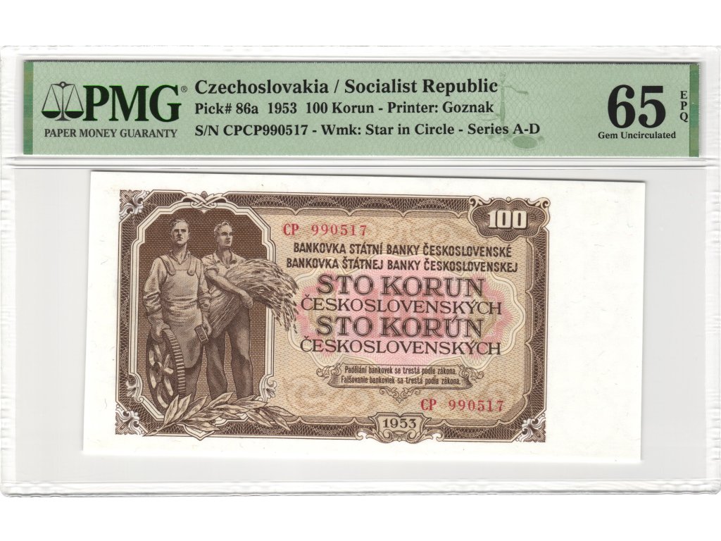 Československo – 100 Korun 1953 S. CP PMG 65 EPQ