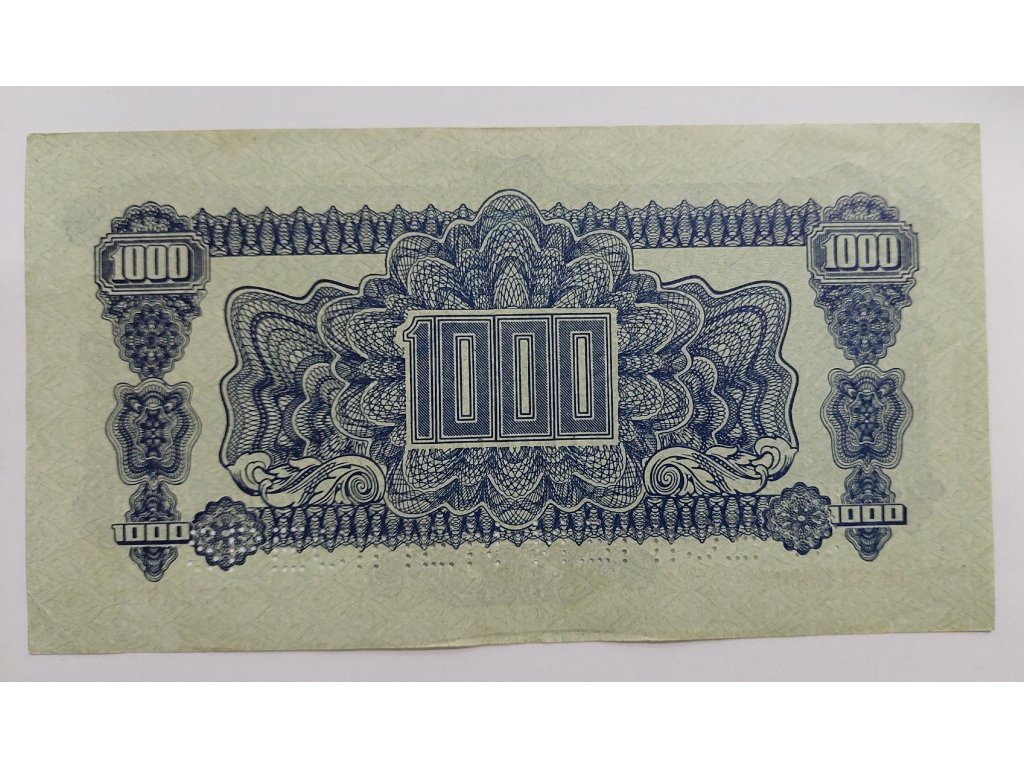 Tisícikoruna 1944 byla emitována v závěrečných měsících druhé světové války a připravována ještě za protektorátní správy. Po osvobození v roce 1945 byla tato bankovka začleněna do oběhu nově obnovené Československé republiky a stala se přechodovým platidlem mezi válečným a poválečným obdobím. Tisk zajistila Státní tiskárna cenin v Praze, která navázala na tradici precizního grafického zpracování s vysokým stupněm ochranných prvků.