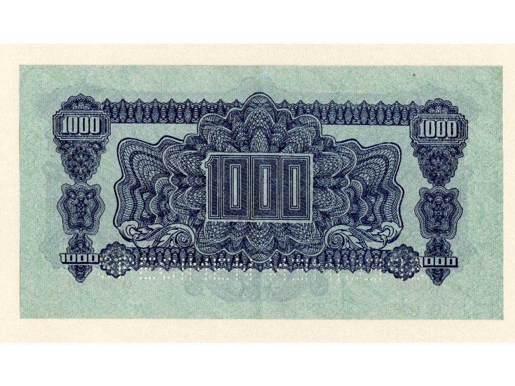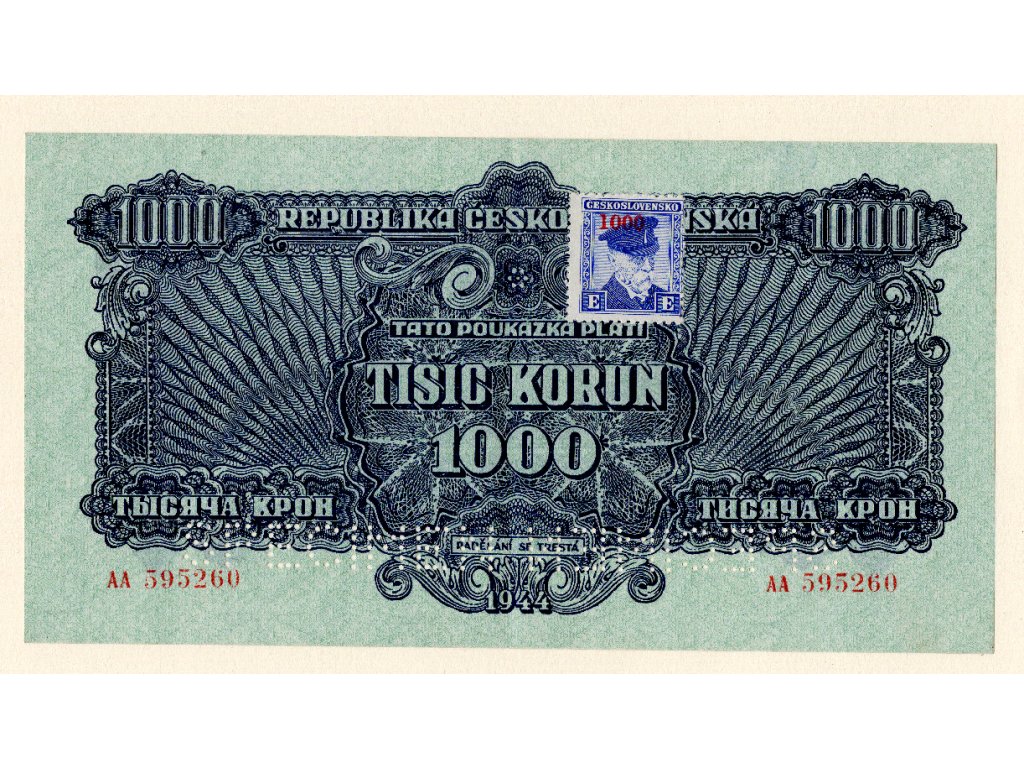 Československo – 1000 korun 1944, poukázka, série AA, 2× SPECIMEN + kolek 1945