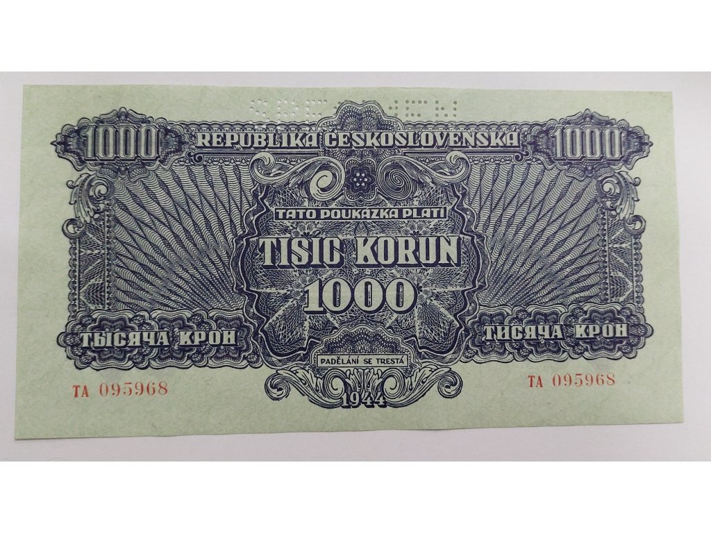 Československo – 1000 korun 1944 S. TA, perforace „SPECIMEN“