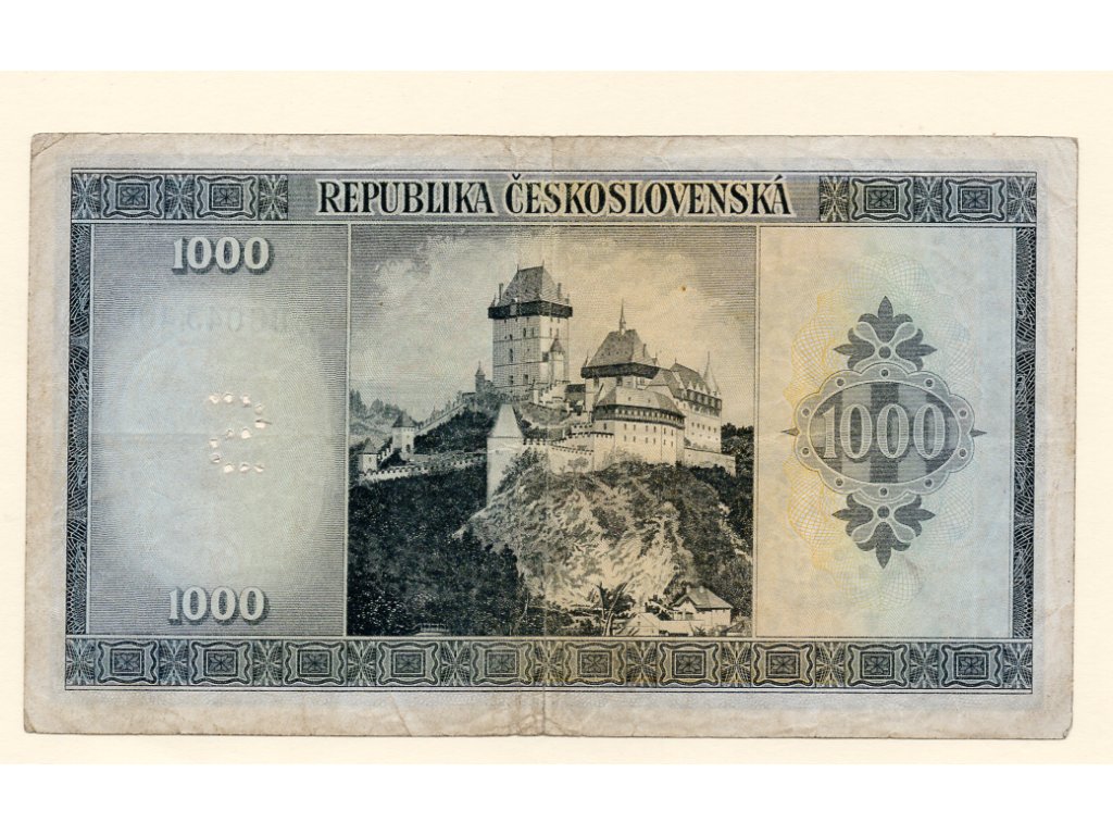 Československo – 1000 korun S. BC (1945), perforace „S“