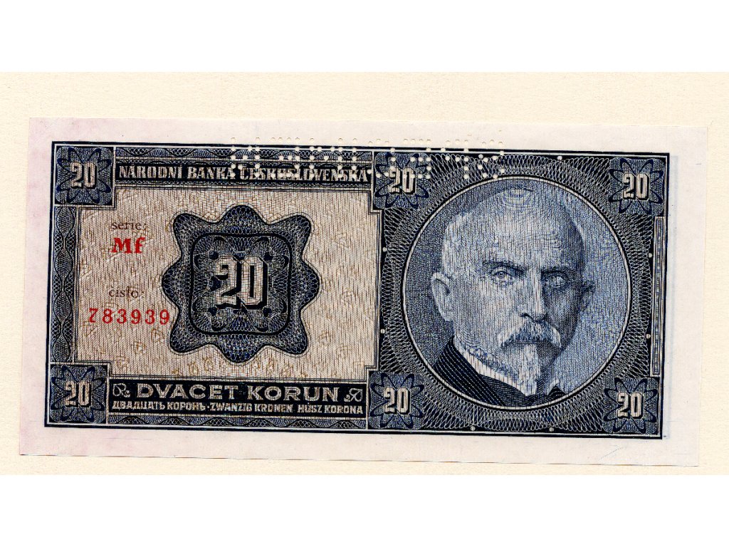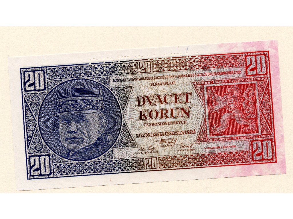 Tato dvacetikoruna je charakteristická pro precizní grafickou práci a výrazný národní motiv. První republika kladla na podobu bankovek mimořádný důraz – měly být nejen ochranným prvkem ekonomiky, ale také estetickým a kulturním symbolem státnosti. Právě díky tomu jsou dnes sběrateli velmi ceněny, neboť zachycují duch své doby autentickým způsobem.