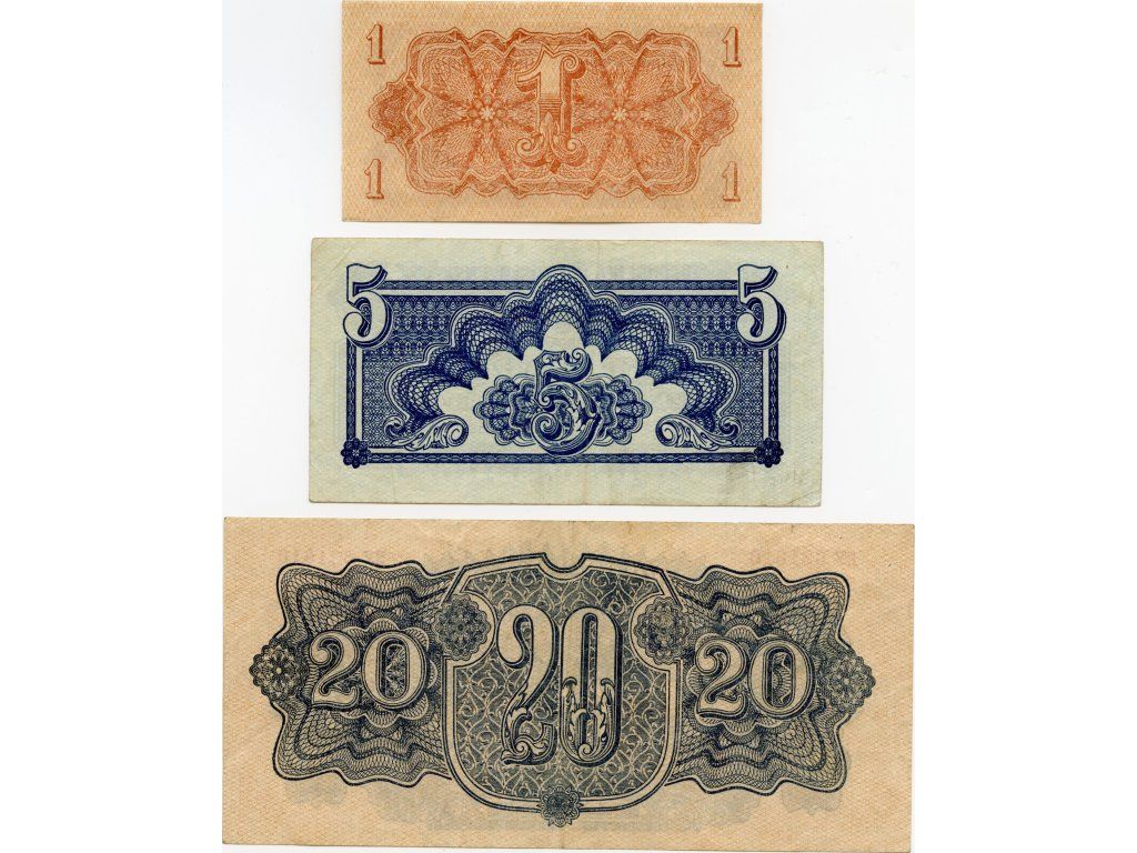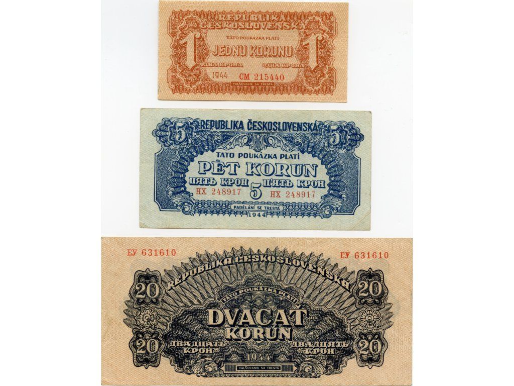 Československo – 20 korun 1944 S. EY + 5, 1 koruna 1944