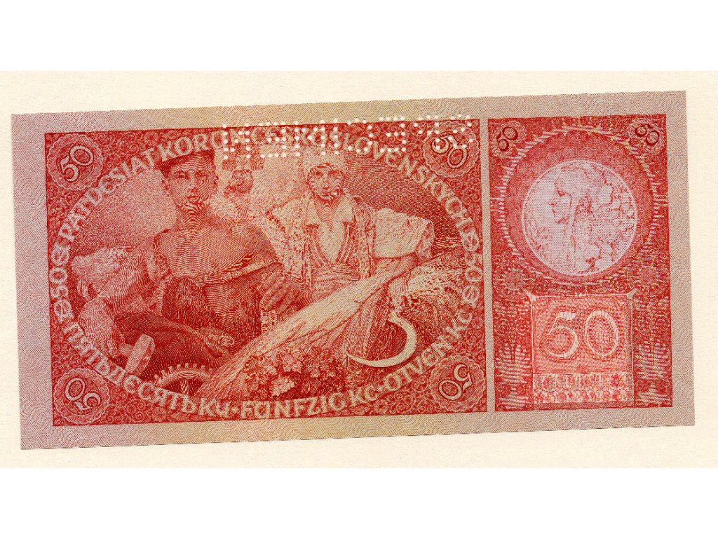 Československo – 50 korun 1929 S Ab, tisk TB NBČS, perforace SPECIMEN