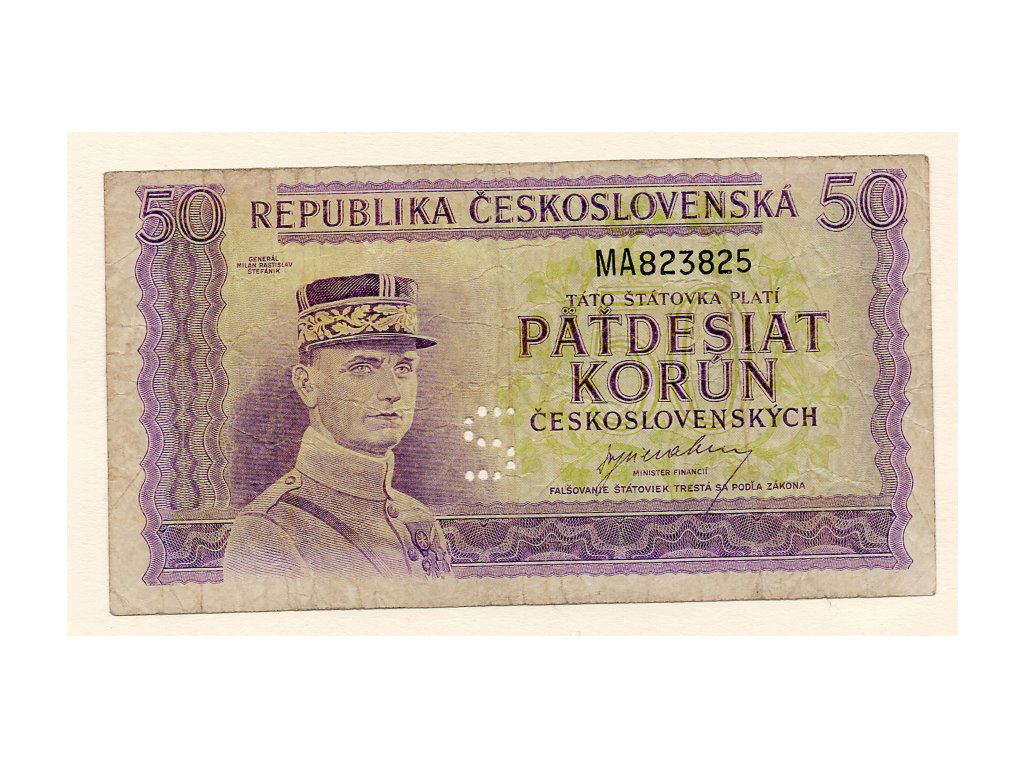 Československo – 50 Korun bez data (1945) S. MA Perforace S