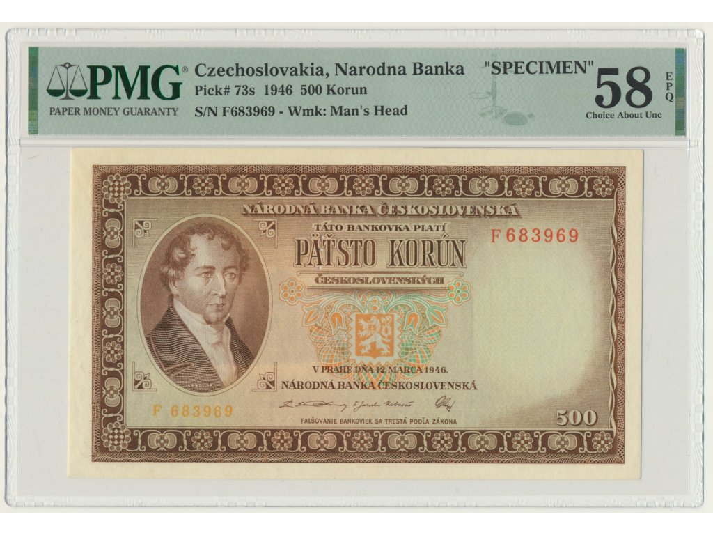 Československo – 500 korun 1946, S. F, Specimen, 58 EPQ