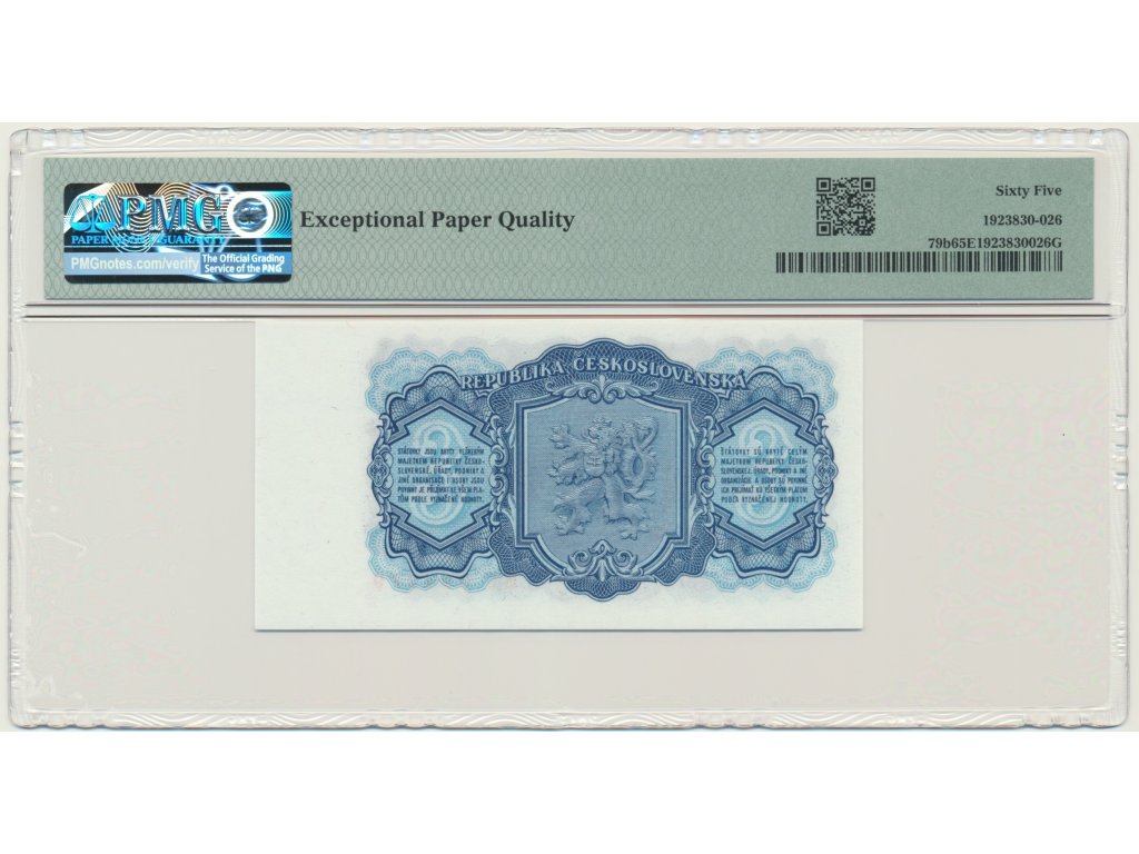 Bankovka je hodnocena prestižní certifikací PMG na úrovni 65 EPQ (Exceptional Paper Quality), což představuje téměř ideální stav zachování s ostrými rohy, původní strukturou papíru a bez známek oběhu. Takto vysoká známka výrazně zvyšuje atraktivitu a sběratelskou hodnotu exempláře. Ocenění „Gem Unc“ je vyhrazeno pro výjimečné kusy, které často figurují v špičkových sbírkách.