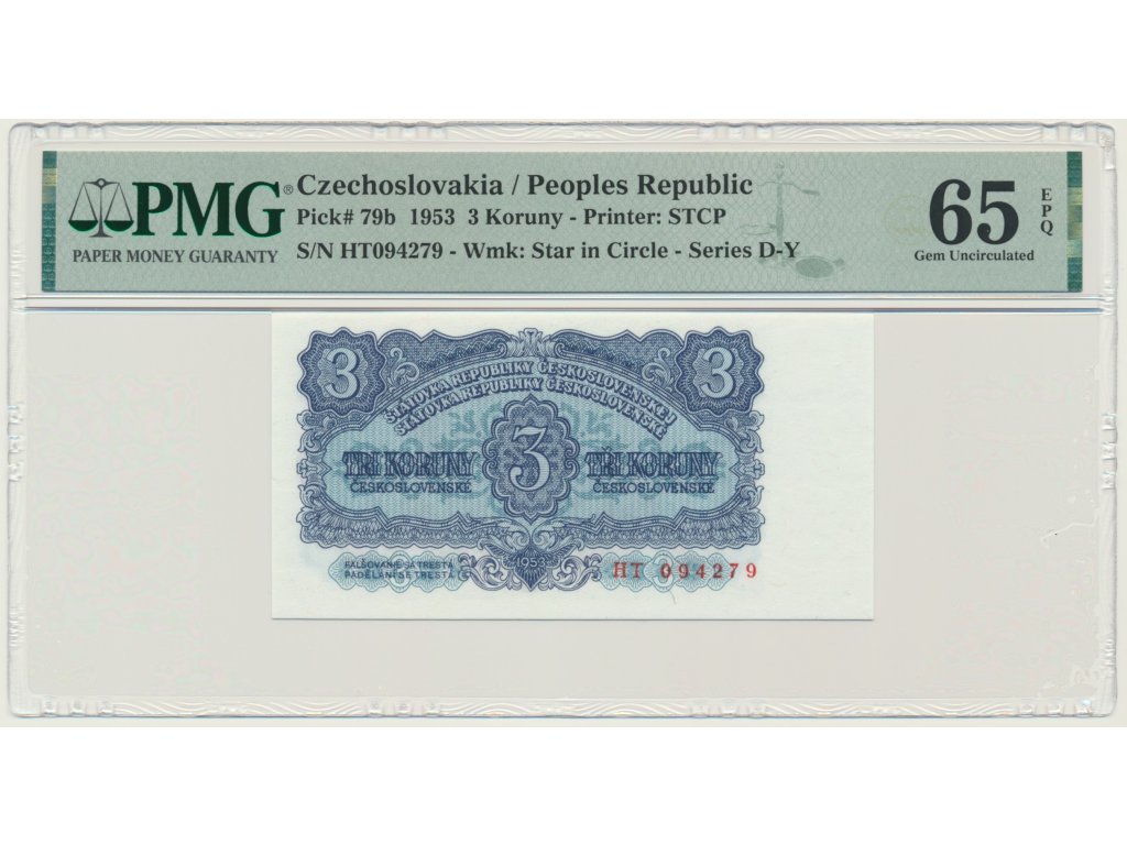 Československo 3 Koruna 1953 S. HT PMG 65 EPQ