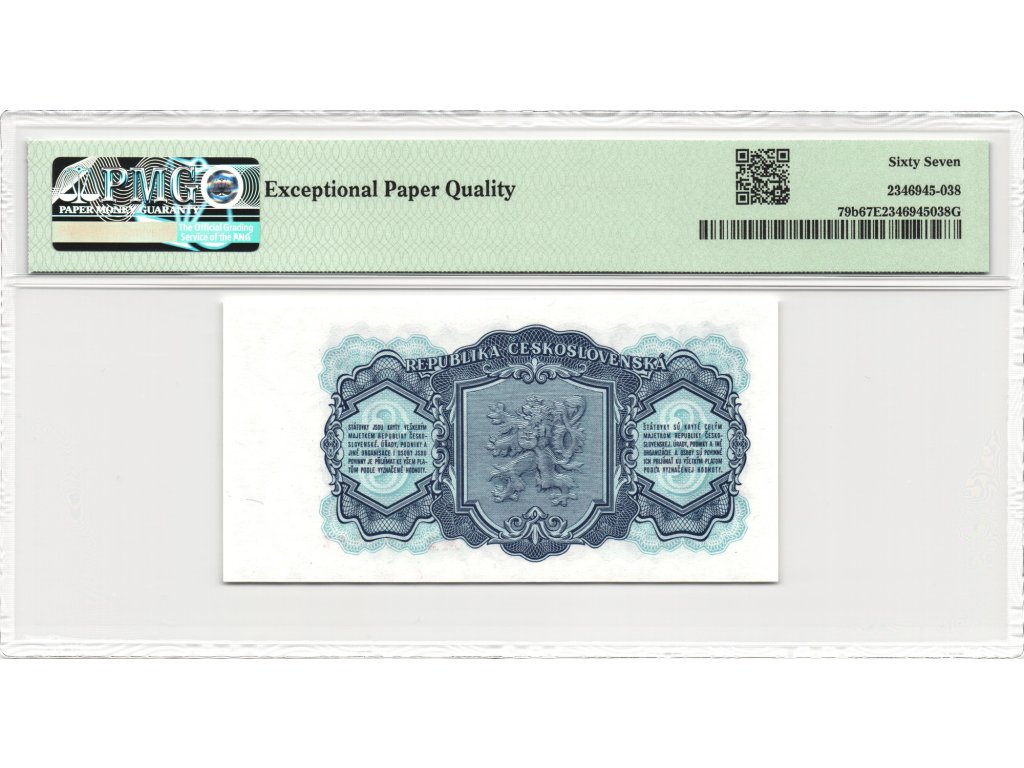 Bankovka je hodnocena prestižní certifikací PMG na úrovni 67 EPQ (Exceptional Paper Quality), což představuje téměř ideální stav zachování s ostrými rohy, původní strukturou papíru a bez známek oběhu. Takto vysoká známka výrazně zvyšuje atraktivitu a sběratelskou hodnotu exempláře. Ocenění „Gem Unc“ je vyhrazeno pro výjimečné kusy, které často figurují v špičkových sbírkách.