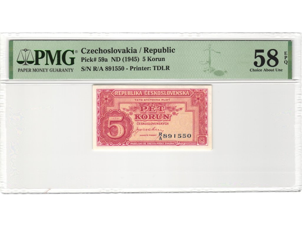 Československo 5 korun bez data (1945) S RA, PMG 58 EPQ