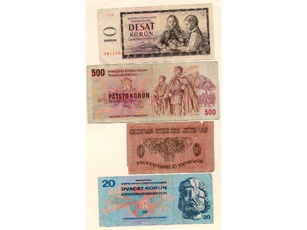Československo, lot 4 ks bankovek