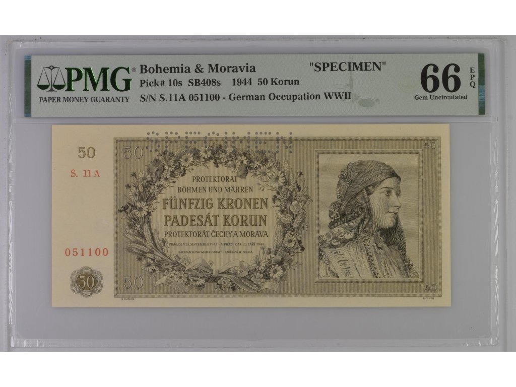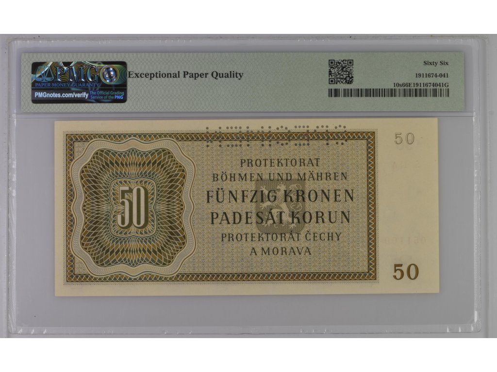 Protektorát Čechy a Morava – 50 korun 1944, Specimen PMG 66 EPQ