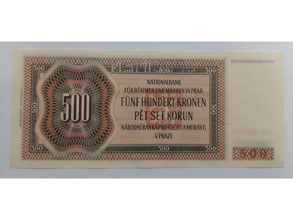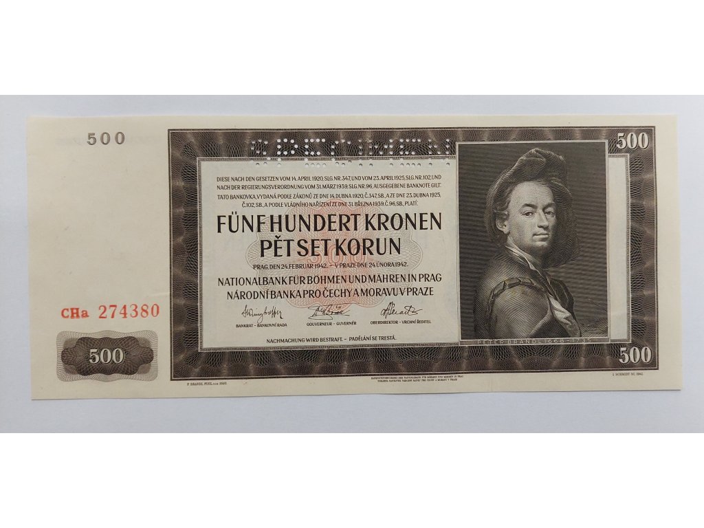 Pro numismatika je pětisetkoruna z roku 1942 s perforací „SPECIMEN“ ukázkou špičkové rytiny, precizní typografie a tiskařského umění, které navzdory válečným podmínkám dosahovalo mimořádné technické i estetické úrovně.