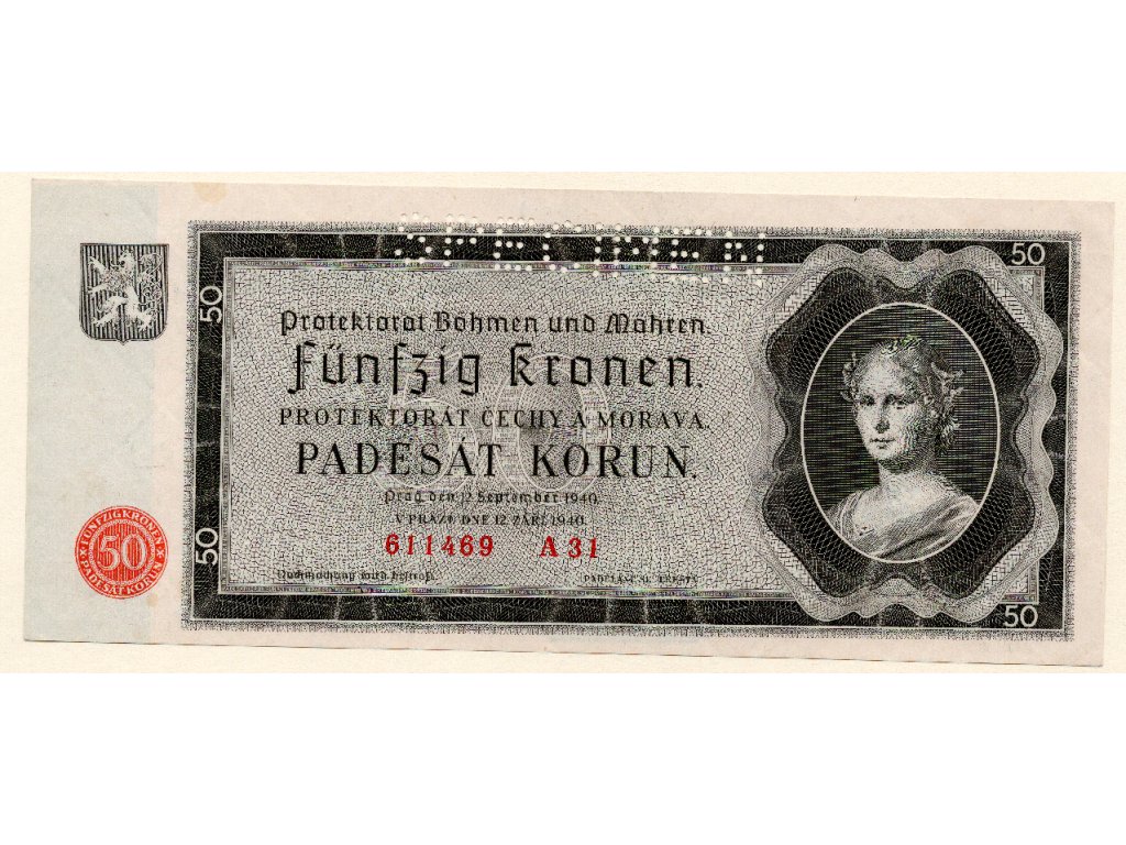 Protektorát Čechy a Morava 50 Korun 1940 S. A 31 Specimen