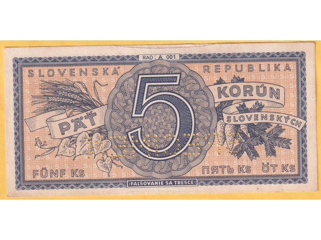 Slovensko – 5 koruna b.d. (1945) s A 01, Specimen