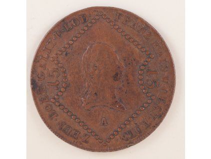 Měděná mince o hodnotě 15 krejcarů z roku 1807 představuje významné období vlády císaře Františka I. a přechod od římského císařství ke sjednocenému Rakouskému císařství. Tyto...