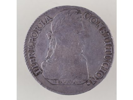 Vzácná bolivijská mince s portrétem Simóna Bolívara z roku 1839 připomíná ideály republiky a ústavnosti, které formovaly moderní Latinskou Ameriku po získání nezávislosti.