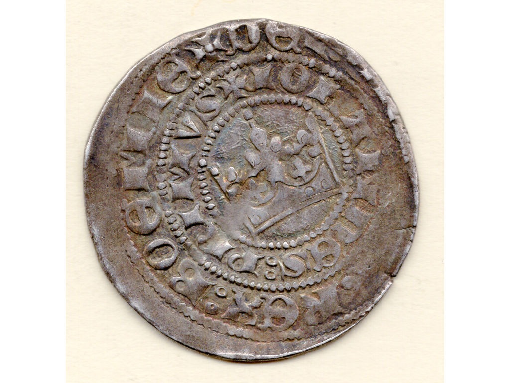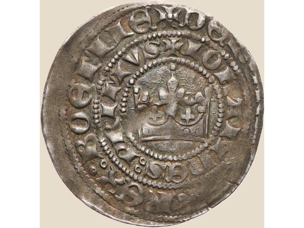 Pražský groš Jana Lucemburského představuje významnou etapu ve vývoji českého středověkého mincovnictví. Vydáván v období, kdy Jan upevňoval svou moc a posiloval postavení českého království v Evropě, se stal spolehlivým a uznávaným platidlem široko daleko. Averz mince zdobí majestátní český lev s dvouocasým ohonem, symbol odvahy a státní suverenity. Reverz je vyzdoben gotickou korunní kompozicí, která odkazuje na královskou autoritu a prestiž.