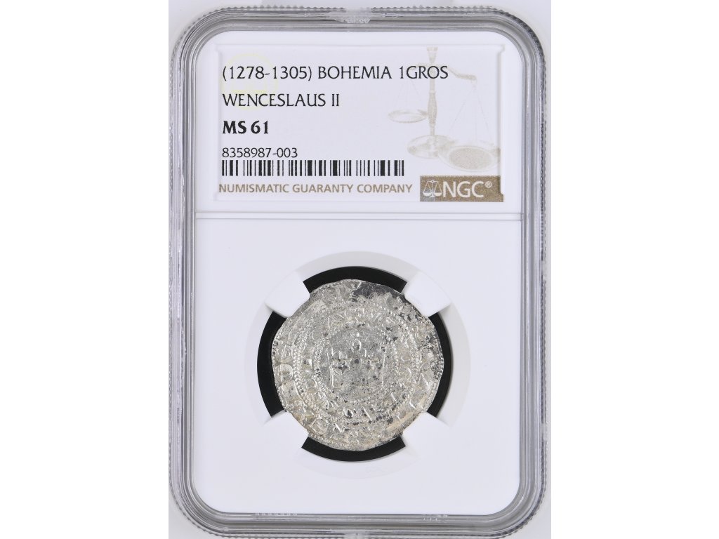 Tento exemplář je uložen v certifikovaném pouzdře společnosti NGC s hodnocením MS 61. Certifikace potvrzuje pravost mince a její velmi vysoký stupeň zachování bez oběhového opotřebení, což je u středověkých ražeb mimořádně ceněné. Mince představuje autentický doklad hospodářské síly přemyslovského státu a zároveň jeden ze základních stavebních kamenů české numismatiky.