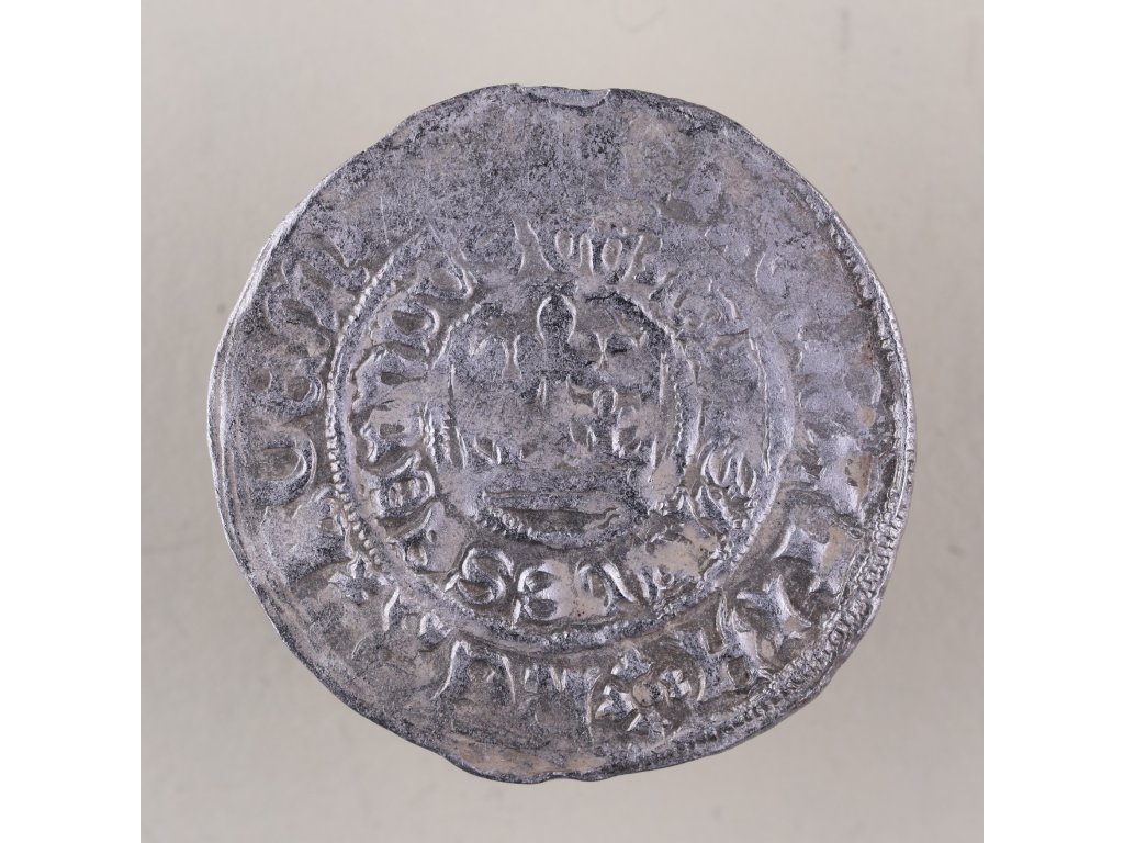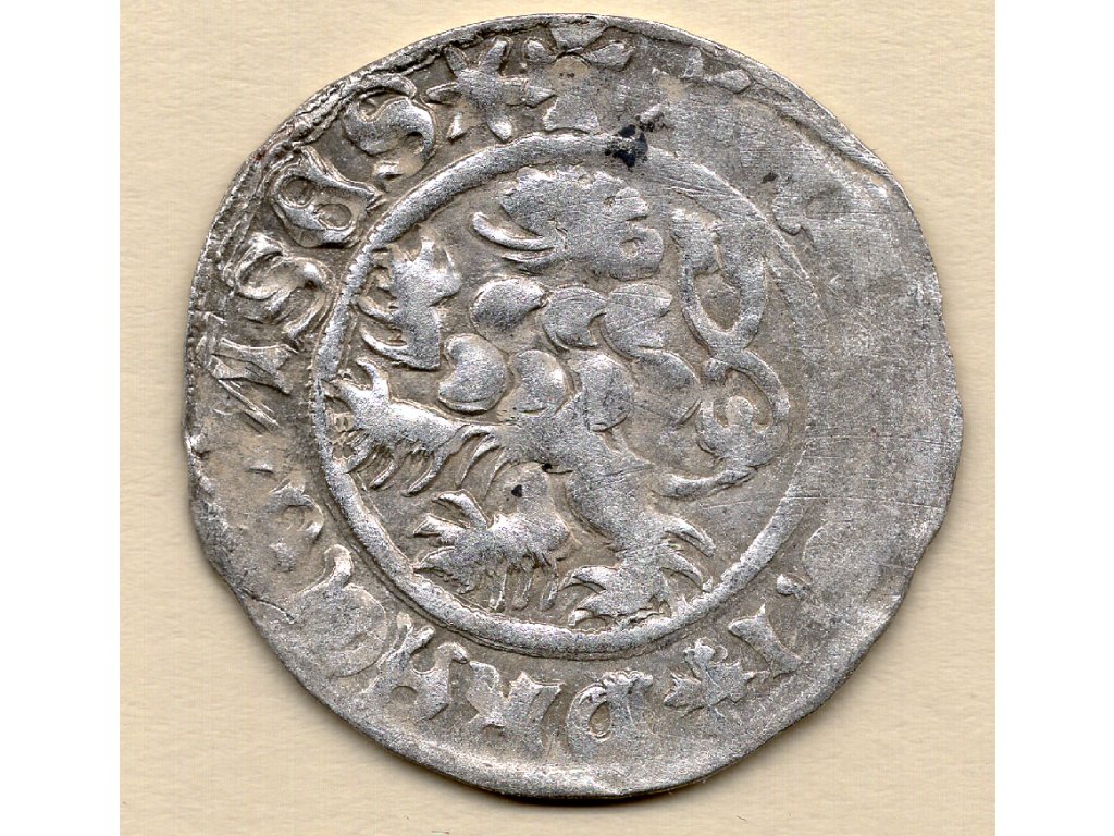 Tento originální pražský groš byl ražen v Kutné Hoře za vlády Vladislava II. Jagellonského (1471–1516), pravděpodobně mezi lety 1479–1510. Na averzu vidíme českého lva ve štítu s korunou, obklopeného legendou. Reverz nese korunní klenot nad středovým štítem, opět obklopen legendou s panovníkovými tituly v latině.
