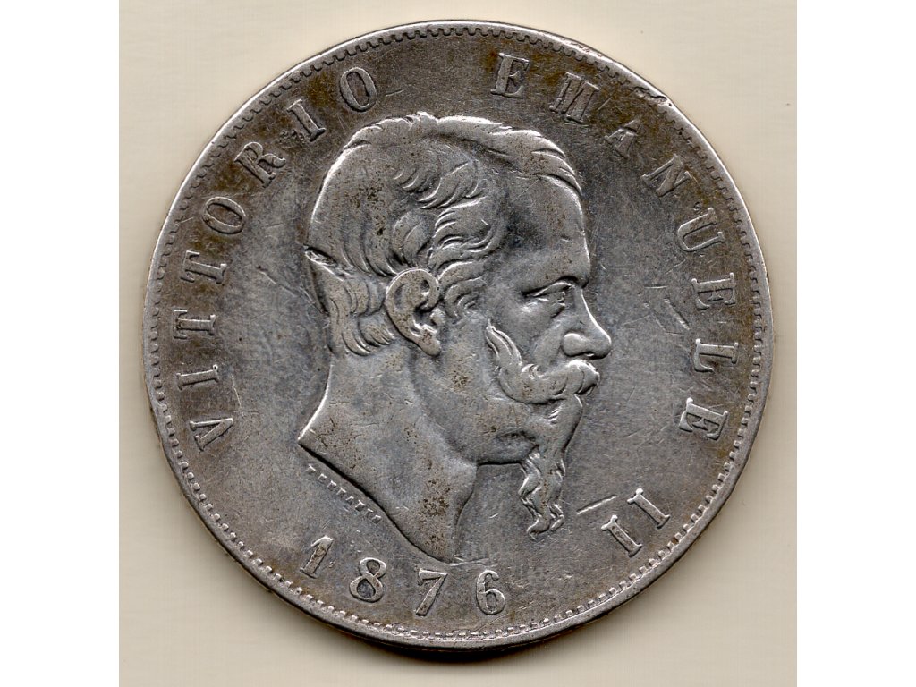 Itálie – 5 lire 1876, Vittorio Emanuele II.