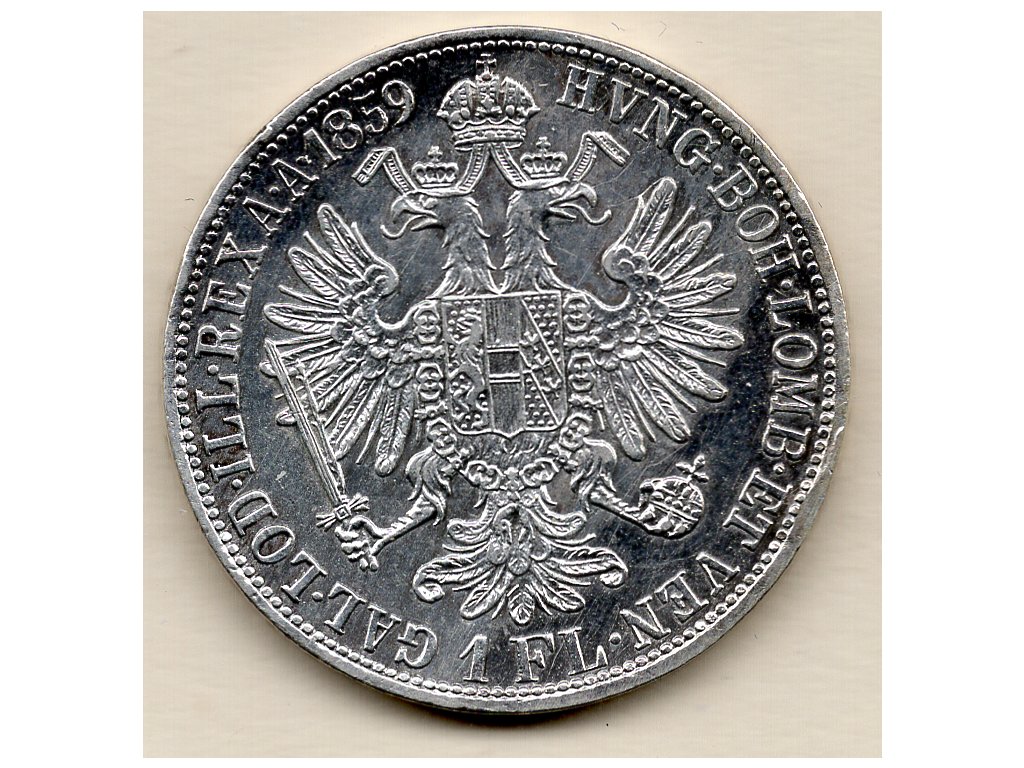 Tato stříbrná mince o nominální hodnotě 1 florin byla ražena v roce 1859 v období vlády císaře Františka Josefa I., který vládl Rakouskému císařství v letech 1848–1916. Jedná se o standardní oběživo před zavedením duální monarchie v roce 1867, používané v široké oblasti habsburské říše.