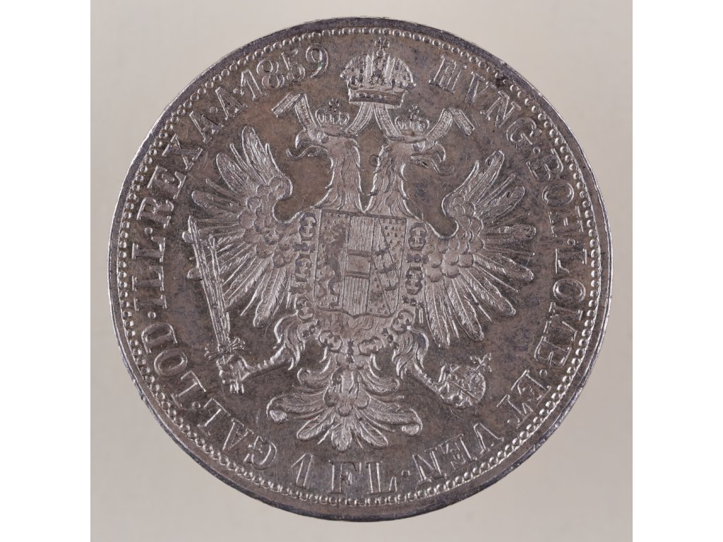 Tato stříbrná mince o nominální hodnotě 1 florin byla ražena v roce 1859 v období vlády císaře Františka Josefa I., který vládl Rakouskému císařství v letech 1848–1916. Jedná se o standardní oběživo před zavedením duální monarchie v roce 1867, používané v široké oblasti habsburské říše.