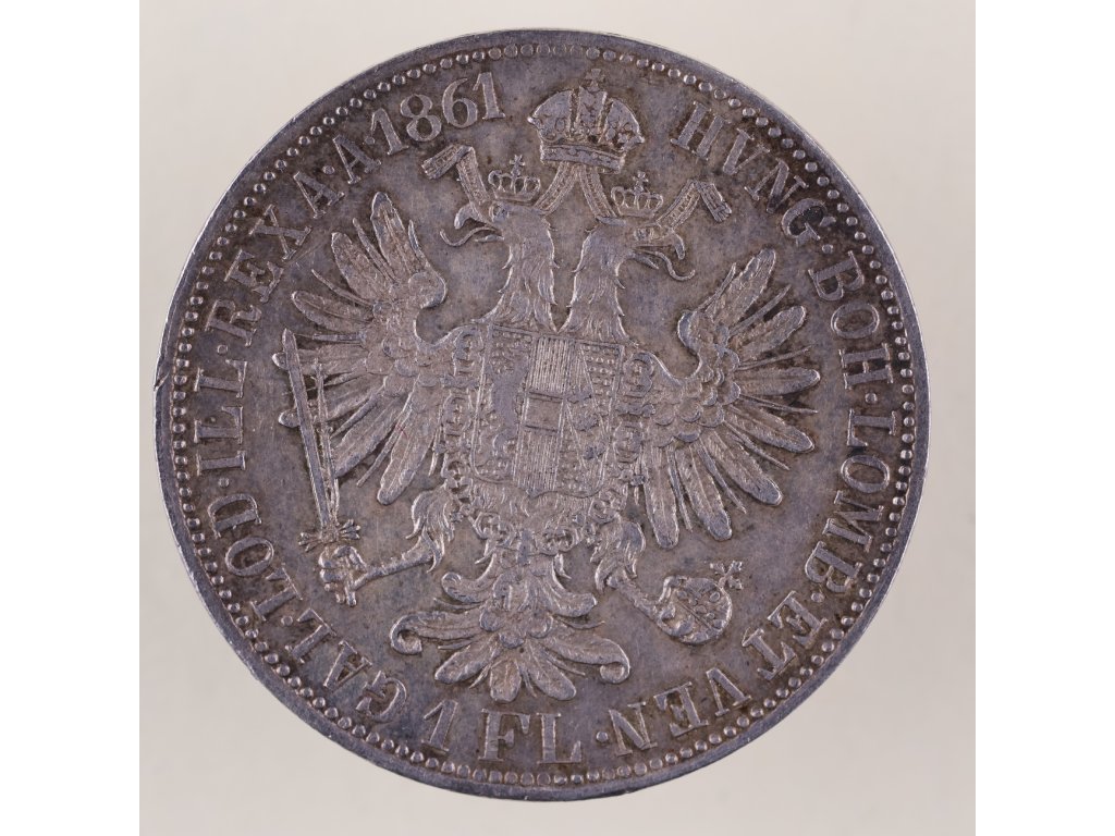 Tato stříbrná mince o nominální hodnotě 1 florin byla ražena v roce 1861 v období vlády císaře Františka Josefa I., který vládl Rakouskému císařství v letech 1848–1916. Jedná se o standardní oběživo před zavedením duální monarchie v roce 1867, používané v široké oblasti habsburské říše.